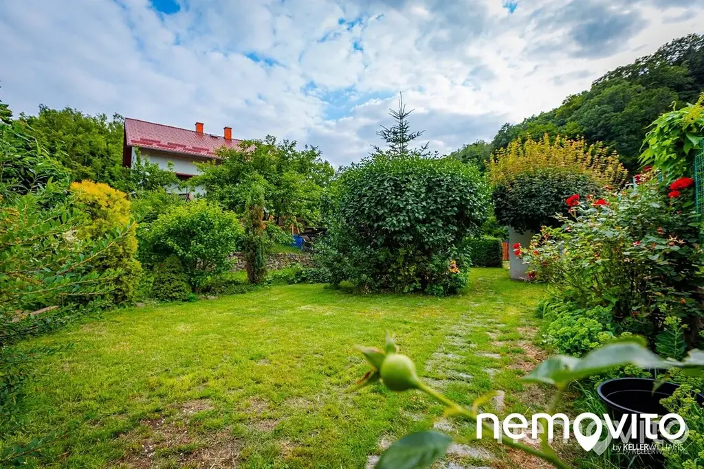 Zahrada o ploše cca 155 m2 je udržovaná, plná dřevin a rostlin, a v její zadní části se nachází parkování pro auta (nad rámec plochy 155 m2, ta je čistě pro zahradu). Taktéž je tu velký kotec pro domácí mazlíčky a sklad dřeva pro topení v krbu.