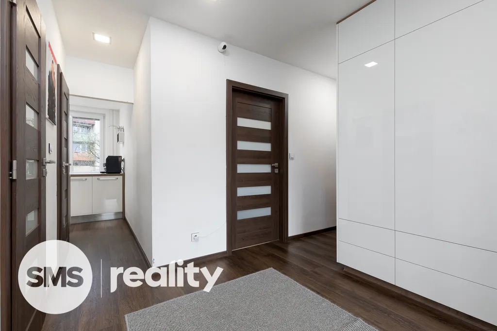Nově nabízíme byt v osobním vlastnictví, který se nachází ve 3. nadzemním podlaží panelového domu na ulici Lidická v Hradci nad Moravicí. Celková plocha bytu činí 60m2. Byt prošel před 5-ti lety celkovou rekonstrukcí – elektroinstalace, omítky, sádrokartonové podhledy s osvětlením, vinylové podlahy, klimatizace, kuchyně na míru, kvalitní spotřebiče (indukční deska, el. trouba, mikrovlnná trouba, myčka, digestoř, granitový dřez, lednice s mrazákem). Koupelna je vybavena bezbariérovým sprchovým koutem a topným žebříkem. Součástí je také umyvadlo se zrcadlem a skříňkou, prostor na pračku a sušičku. Z prostorné chodby, kde je dostatek úložného prostoru, je vstup do ložnice, komory a obývacího pokoje s klimatizací. Lodžie nabízí nádherný výhled na panorama Hradce nad Moravicí. K bytu lze dokoupit garáž, ta je umístěna v přízemí budovy. Cena garáže je 500 000Kč.