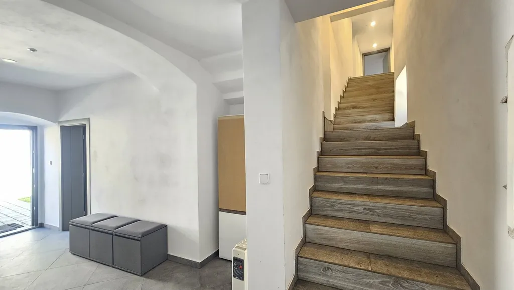 Dvě neprůchozí místnosti, obývací pokoj, kuchyně a koupelna. Ideální pro vytvoření samostatné bytové jednotky či ubytovacích pokojů.