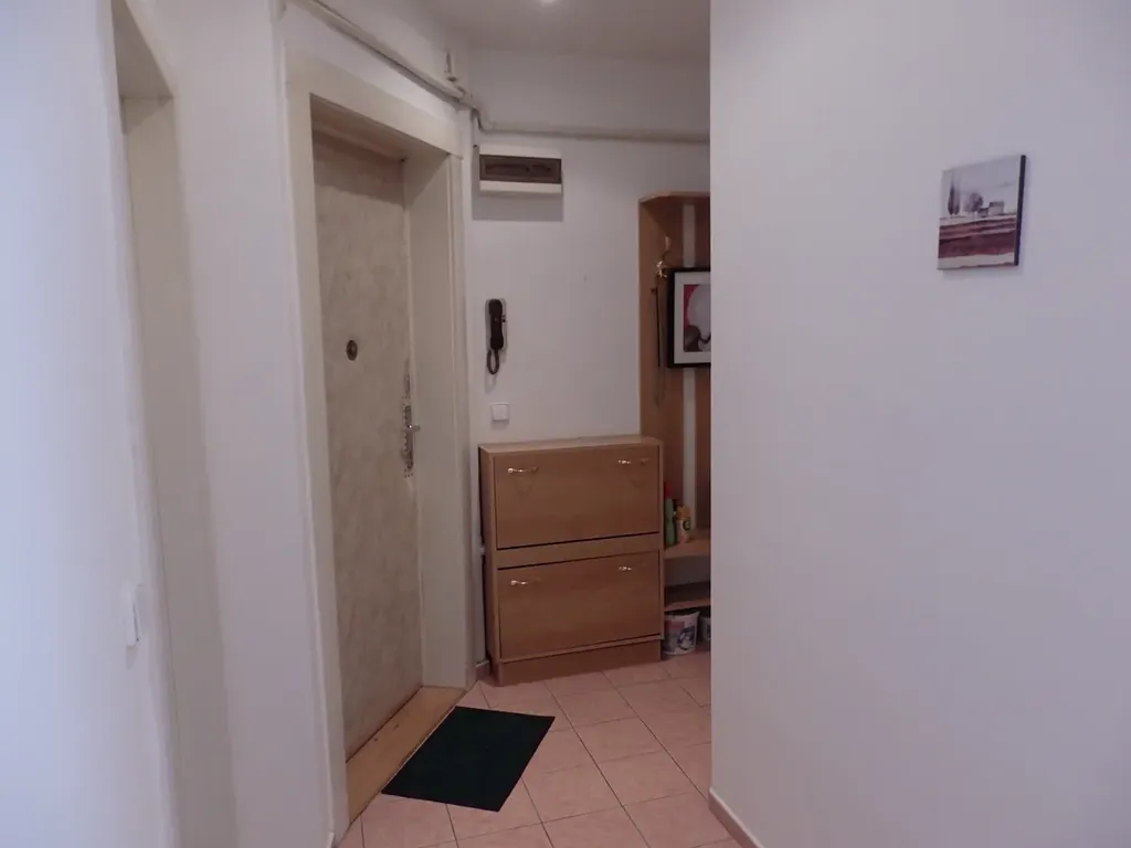 V pokoji je k dispozici sedačka, patrová postel, prostorné vestavné skříně a další základní nábytek. Koupelna se sprchovým koutem, pračkou a bojlerem. WC samostatné. Okna jsou do klidné ulice. Vytápění plynové WAW. Podlahy plovoucí a dlažba. K bytu dále náleží sklepní kóje 2 m2 v suterénu domu.