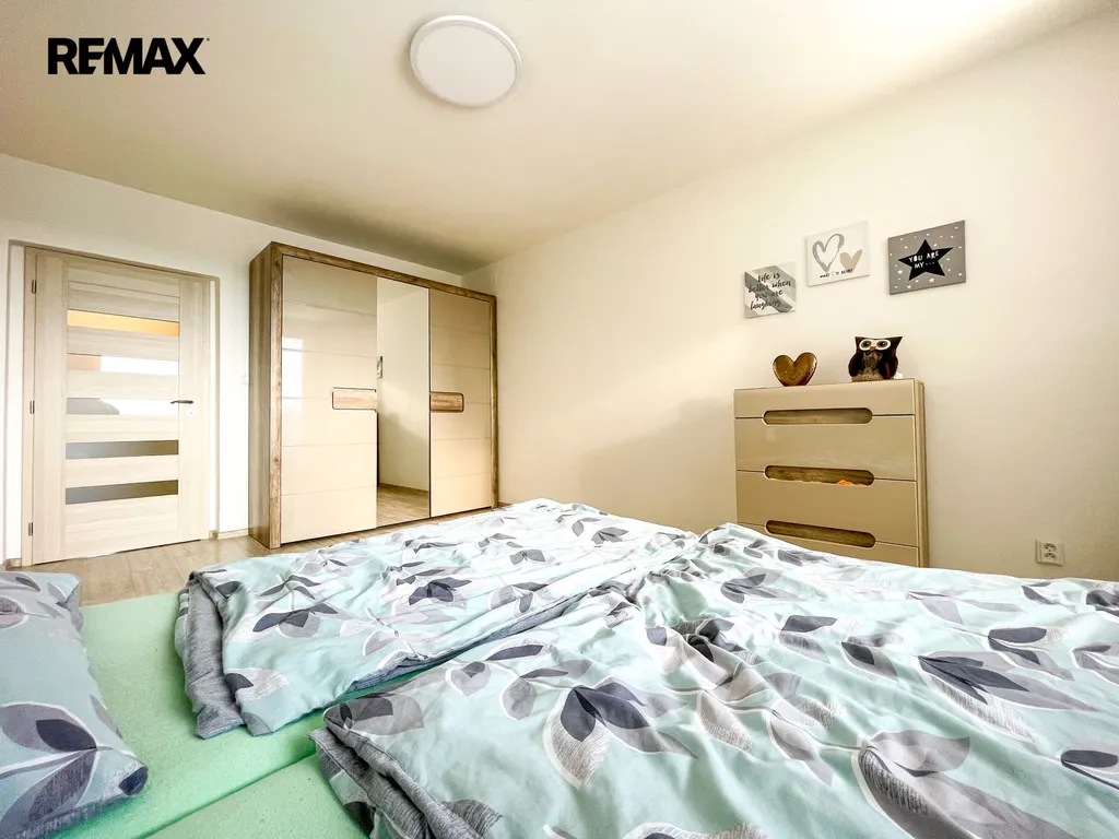 Do prostorné ložnice se dostanete přes jednu průchozí místnost, která byla využívána jako dětský pokoj, ale může také sloužit třeba jako pracovna či šatna. V ložnici se nachází šatní skříň, komoda a vstup na druhý balkon.