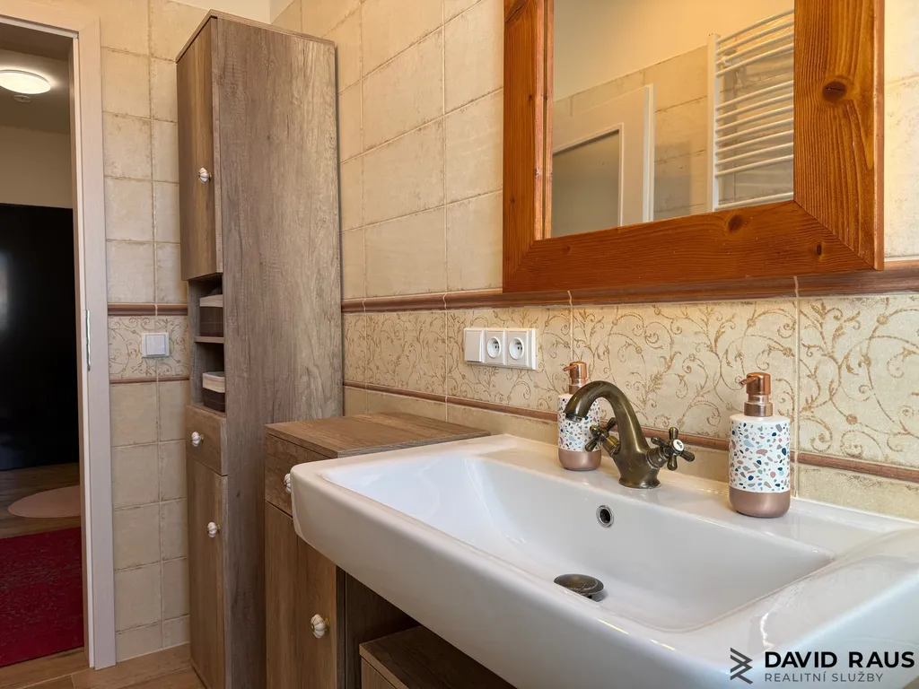 Dispozice 3+kk: Po vstupu do bytu vás přivítá předsíň s vestavěnou skříní, ve které je elegantně ukrytý bojler, takže nenarušuje čistý vzhled interiéru. Z předsíně vstoupíte do hlavní obytné části – obývacího pokoje s kuchyňským koutem a jídelní zónou. Tento prostor působí velmi útulně a harmonicky, díky světlé výmalbě, přírodním materiálům a celkovému sladění interiéru. Je to místo, kde se budete cítit příjemně od prvního okamžiku. I zde je k dispozici klimatizace pro maximální komfort v letních měsících. Byt nabízí ložnici s klidnou atmosférou, ze které je přímý vstup na balkon – ideální místo pro ranní kávu i večerní odpočinek. Také zde je instalována klimatizace. Další samostatný pokoj může sloužit jako dětský pokoj, pracovna nebo pokoj pro hosty a stejně jako ostatní místnosti je vybaven klimatizací. Součástí bytu je také koupelna, která je laděna do jemných přírodních tónů v kombinaci světlé keramiky a dekoru dřeva. Dominantou prostoru je vana pro pohodlnou relaxaci a celkový dojem podtrhují stylové baterie ve vintage duchu, které odkazují na francouzský design. Díky střešnímu oknu je koupelna krásně prosvětlená a působí vzdušně a příjemně. K dispozici je také samostatné WC.
