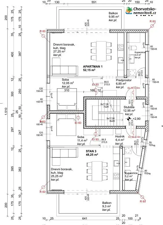 Chorvatsko-Nemovitosti.cz má pro Vás dvoupokojový apartmán o rozloze 56 m², který je ve výjimečné lokalitě v Novalji, jen 500 m od moře. Apartmán se nachází na prvním patře, je klimatizovaný a částečně zařízený.