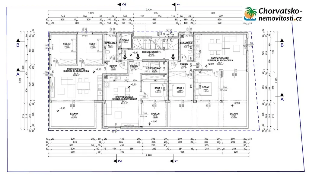Prodej apartmánu o velikosti cca 55 m², dispozice: