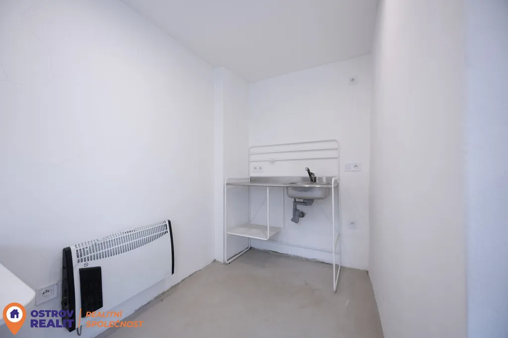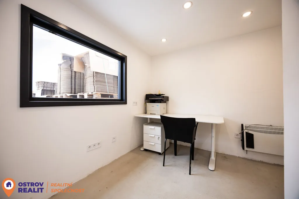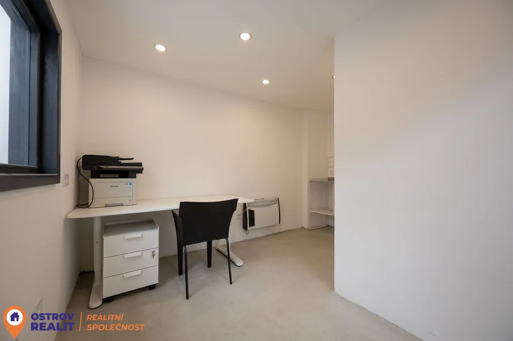 Součástí prostoru je praktická malá kuchyňka a sociální zařízení (WC).