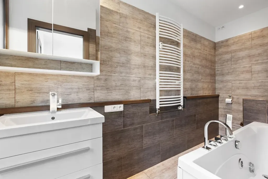 Dispozice nabízí prostorný obývací pokoj, samostatnou kuchyň s oknem a koupelnu s WC, která má rovněž své okno což je u tohoto typu bytů velmi výjimečné. Zvětšená koupelna disponuje masážní vanou. Významným bonusem je samostatná šatna v předsíni, druhá menší šatna je navíc v ložnici.