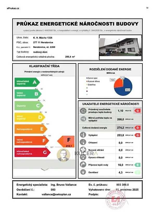 | Ukazatel energetické náročnosti | 215.1 kWh/m2 za rok |