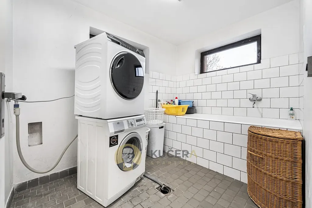 Výhodou je suterén, kam zaparkujete pohodlně dvě a klidně i čtyři auta. Suterén poskytuje plnohodnotné zázemí domu - nachází se zde technická místnost, prádelna, toaleta a skladové prostory. Díky tomu je dům dobře připravený i pro větší domácnost a zároveň nabízí dostatek místa na uskladnění věcí nebo hobby zázemí. Výška stropu 280 cm.
