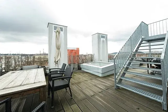 Byt nabízí velkorysou obytnou plochu 196 m² a jedinečnou soukromou terasu o velikosti 157 m², která poskytuje dostatek prostoru pro relaxaci, venkovní posezení nebo setkávání s přáteli. Byt se pronajímá nezařízený a je vybaven klimatizací, která zajišťuje maximální komfort po celý rok.