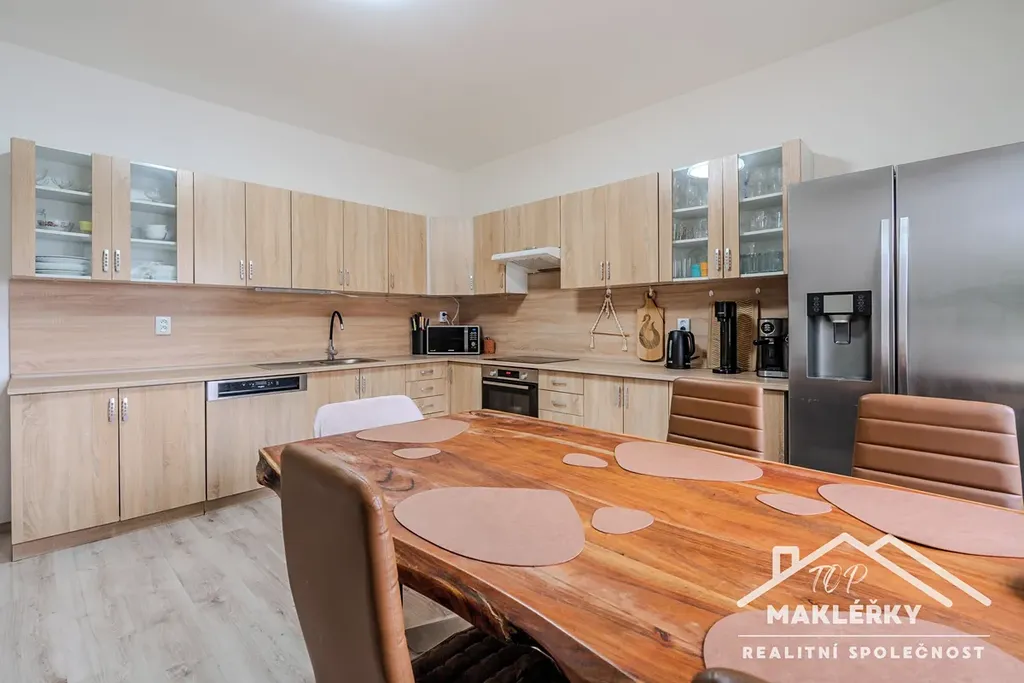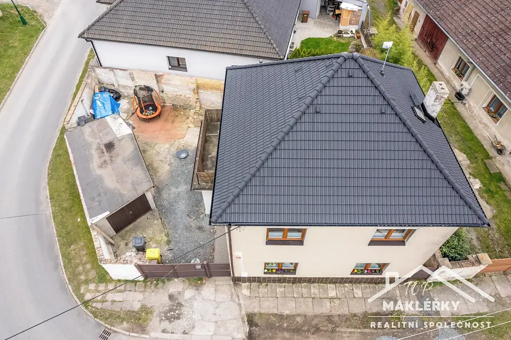Nabízíme Vám ke koupi prostorný rodinný dům v klidné části obce Pašinka, okres Kolín ve Středočeském kraji. Leží asi čtyři kilometry jihozápadně od Kolína, kde je veškerá občanská vybavenost. Dům má celkem dvě nadzemní podlaží: přízemí a první patro. Dispozice v přízemí domu: předsíň, hala, tři samostatné pokoje s kuchyní, pokoje jsou neprůchozí, prostorná koupelna s vanou, dohromady s toaletou, technická místnost. Dispozice prvního patra: hala, celkem tři pokoje, v jednom pokoji vše připraveno na kuchyňský kout. Dále koupelna se sprchovým koutem, dohromady s toaletou, komora - úložný prostor, z kterého se vchází do půdního prostoru, (Připravené k půdní vestavbě). V roce 2025 se dělalo zateplení pěnou 40 cm, také výměna střešní krytiny + fotovoltaika, na ohřev vody (celkem pět panelů) a balkón. Obě dvě bytové jednotky mají samostatný vchod s dispozicí 3kk, vlastní zdroj vytápění, samostatný elektroměr, vodoměr je společný. Tento dům prošel průběžně rekonstrukcí. Nabízí se tedy možnost investice a následného pronájmu, nebo společného bydlení, pro dvě generace a přitom bude mít každá své soukromí. Popřípadě je dům vhodný pro větší rodinu. (Bytové jednotky jsou mezi sebou odděleny průchozí chodbou, kde jsou dveře). Do domu je přivedena obecní voda a kanalizace. Náleží k němu sklep, garáž a parkovat lze také přímo před domem, dvě auta. V prezentaci je k dispozice půdorys domu a také virtuální prohlídka domu. Veškerá občanská vybavenost v blízkém Kolíně, zastávka MHD téměř u domu.