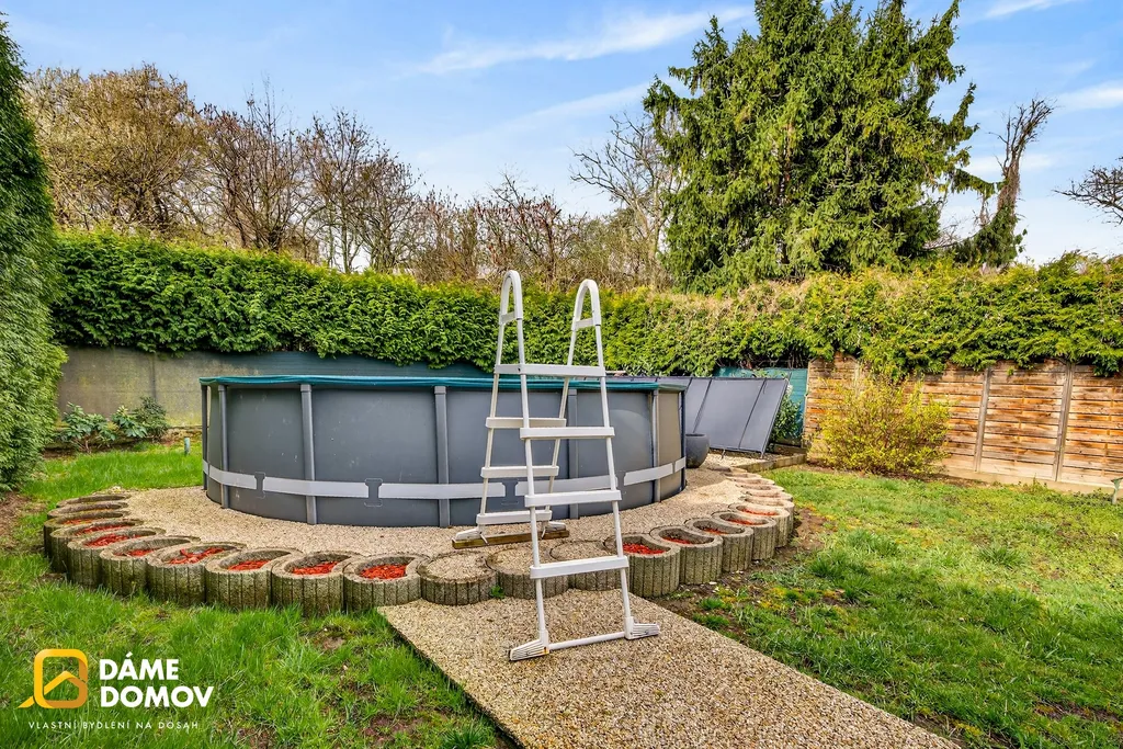 Součástí prodeje je i prostorná garáž se sekčními vraty a především nádherná, udržovaná zahrada o celkové výměře 241 m². Ta nabízí vše, co si od dokonalého zázemí představíte – vyhřívaný bazén, pěkné posezení, prostor pro grilování i dostatek místa pro odpočinek.