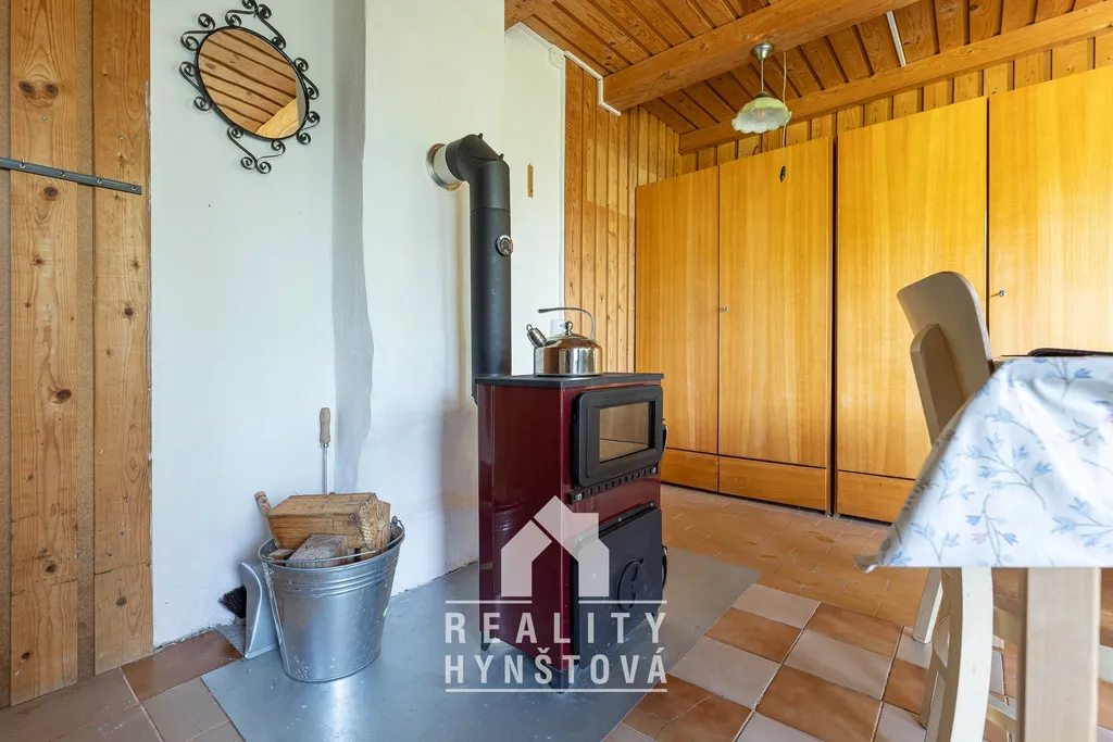 O vytápění chaty se postarají kamna z roku 2021. Bylo provedeno také nové oplechování kolem komínu. Součástí prodeje není vybavení v obyt. části - stůl, židle, lednice, matrace.