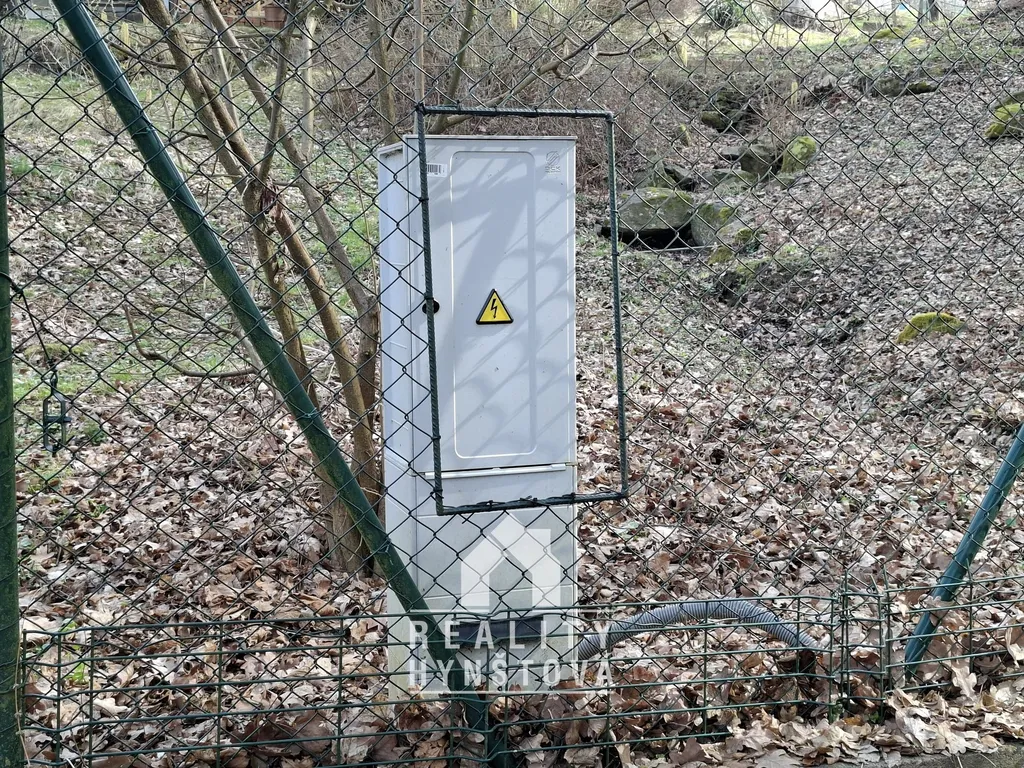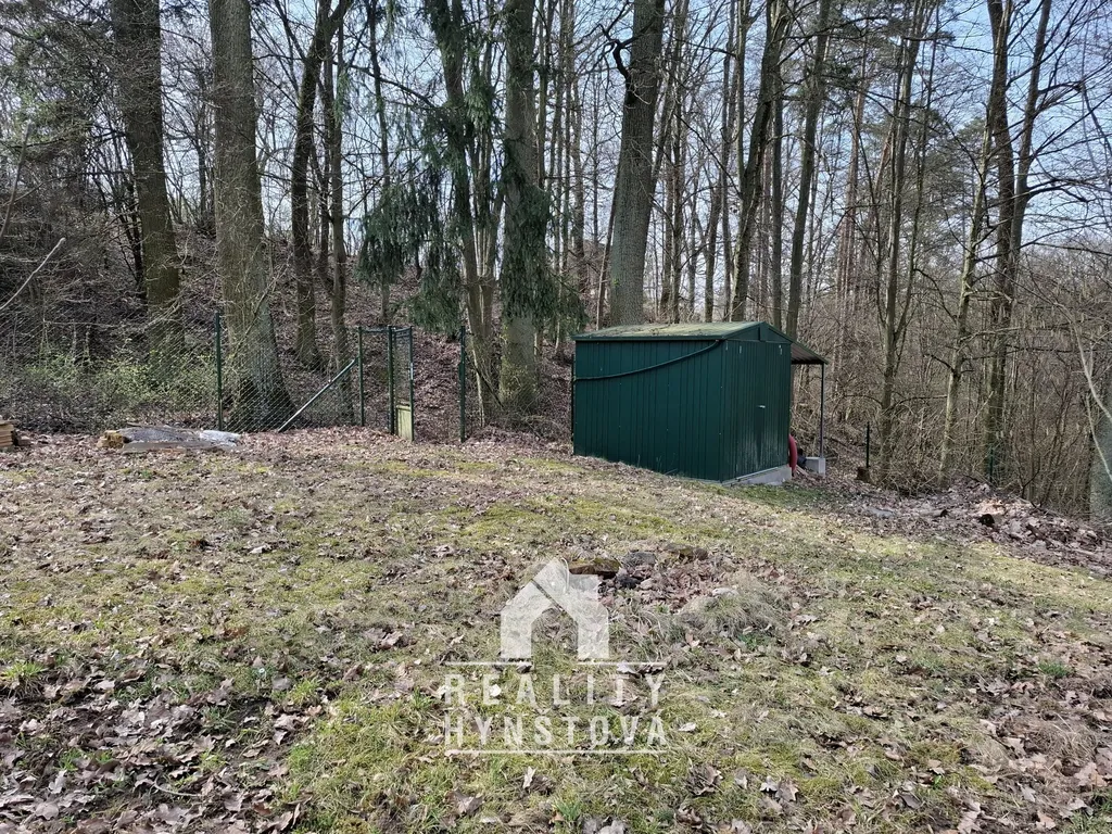 Zahrada o výměře 1 213 m² má mírně svažitý a členitý terén a je osázena ovocnými stromy a keři. Určitě oceníte, že od lesa má zahrada nové oplocení. Najdete tu také novou plechovou kolnu pro uložení nářadí a pojistkovou skříň (elektřina) na hranici pozemku.