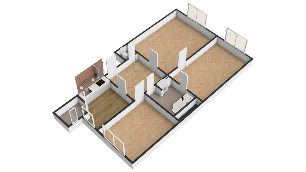 Dispozici bytu tvoří samostatná kuchyně s oknem a praktickou kuchyňskou linkou včetně myčky nádobí. V kuchyni je dostatek prostoru i pro jídelní stůl se židlemi. Dále jsou zde tři velké obytné místnosti s krásnými udržovanými parketami.