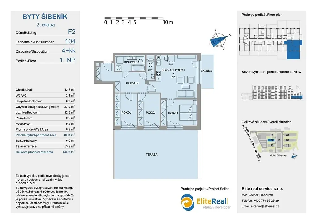 Prodáno 90% bytů. Elite real service s.r.o., prodejce projektu, Vám nabízí prodej nové bytové jednotky přímo v centru města Olomouce v developerském projektu Nový Šibeník 2.etapa (předpokládaný termín dokončení 12/2025). Bytová výstavba je situována v exkluzivní lokalitě přímo v centru města v blízkosti ulice Na Šibeníku v městské části Nová Ulice, Olomouc. Bytová jednotka F2.104 4+kk je orientována na severovýchod. Plocha jednotky 79,9 m2 + plocha terasy na terénu 57,2 m2 + plocha terasy nad terénem 5,8 m2. Zajistíme Vám bezplatně financování nemovitosti. Nabízíme klientům služby vlastního hypotečního centra s výhodami, které jsme pro Vás s bankovními ústavy připravily. Kupte si nové nízkonákladové bydlení - bytový dům je zařazen do energetické třídy B. Půdorys bytové jednotky, který zde prezentujeme, je základní. Dispozici nové jednotky a design si můžete upravit dle vlastních požadavků. Jednotky je možné slučovat i rozdělovat dle fáze výstavby. Nechte si postavit nový byt dle vašich představ. K novému bytu je možno dokoupit sklep nebo vnitřní parkovací stání. Standardní vybavení bytů splňuje požadavky moderního bydlení (keramická podlaha, obložkové zárubně, moderní keramické obklady, francouzské okna, atd.). Klientům nabízíme možnost kompletního návrhu a řešení interiéru. Výjimečná investiční příležitost koupě nového bytu přímo v centru města u tramvajové zastávky s docházkovou vzdáleností 7 minut pěšky do historického centra. Pro investory zajišťujeme bezplatně následný pronájem, případně i správu nemovitosti. Doporučujeme osobní jednání a prohlídku výstavby - volejte makléře. Bližší informace k bytovému projektu a největší nabídku novostaveb - nových bytů, bytů na prodej, bytů k pronájmu - naleznete na našich webových stránkách.