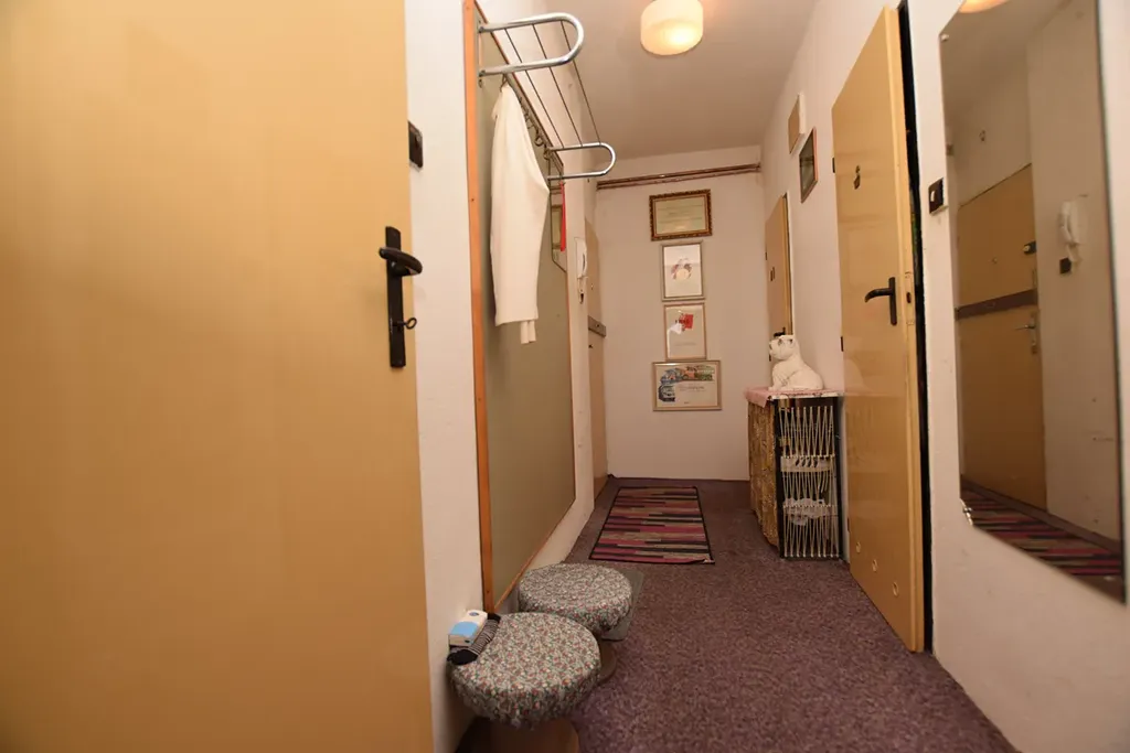 Bytová jednotka je o dispozici 2+1, přičemž jednotlivé místnosti jsou enormně prostorné, světlé a se samostatnými vstupy. Výhodou je i chodba s vestavěnými skříněmi (lze využít ať už jako šatna či rozšíření chodby).