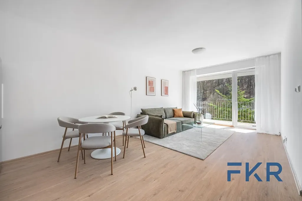 Moderní, účelný a světlý interiér těží především z promyšleného uspořádání pokojů a velkoformátových oken, která prostoru dodávají další rozměr. Podlahové vytápění eliminuje potřebu klasických radiátorů, což umožňuje snadnější rozmístění nábytku a maximální využití každého metru čtverečního. Nadstandardním prvkem je dvojice balkónů, které poskytují plnohodnotně využitelný venkovní prostor.