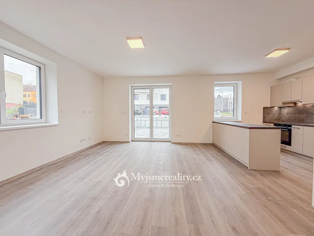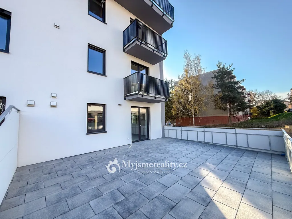 Pronájem novostavby cihlového bytu o dispozici 2+kk a POZOR!!!! s terasou o velikosti 49m2 a vlastním parkovacím stáním přímo před domem.