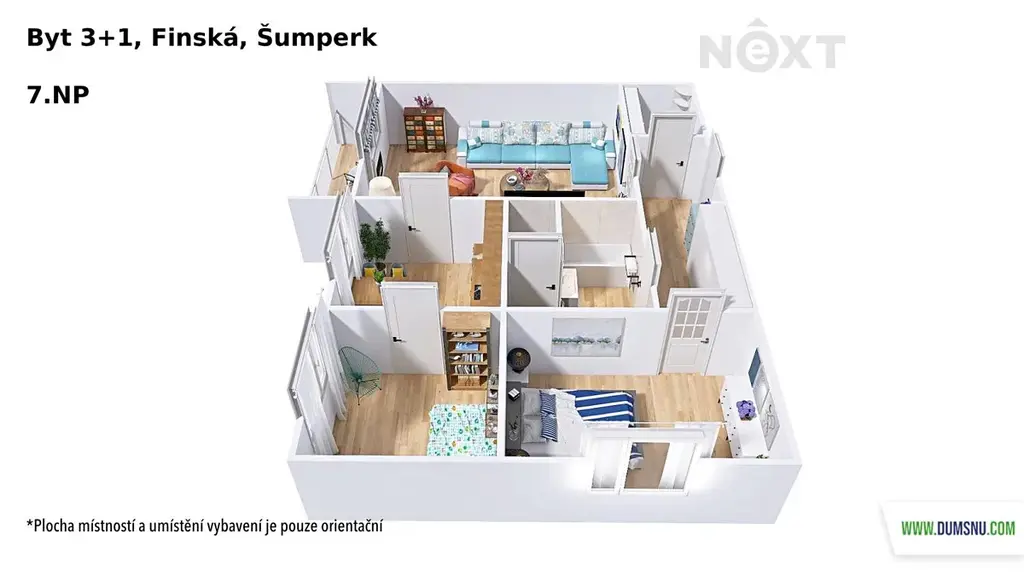 Dispozice bytu je praktická a velmi příjemná pro rodinný život. Obývací pokoj, ložnice i další pokoj