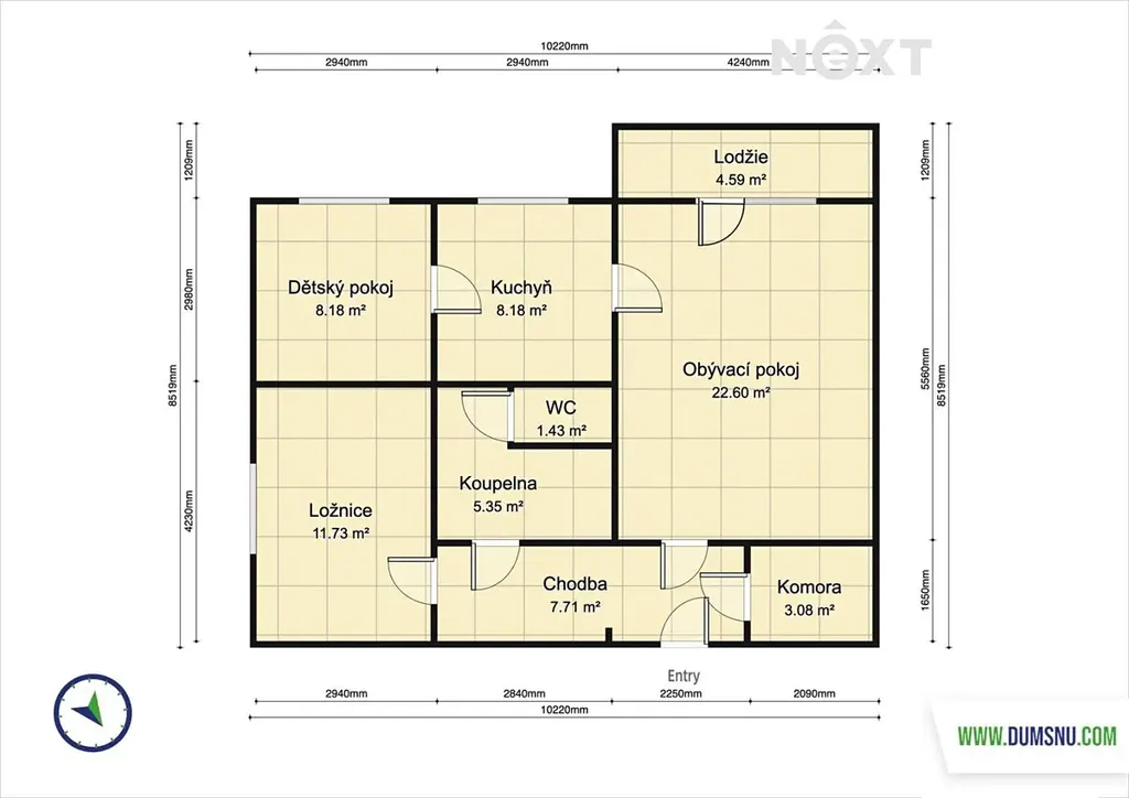 Na byt navazuje lodžie o výměře 4,50 m2