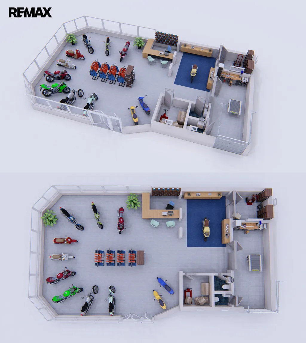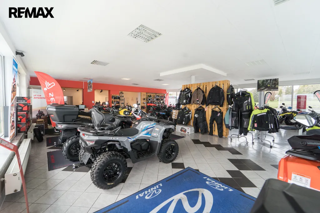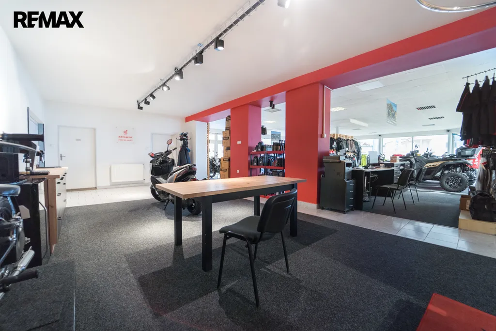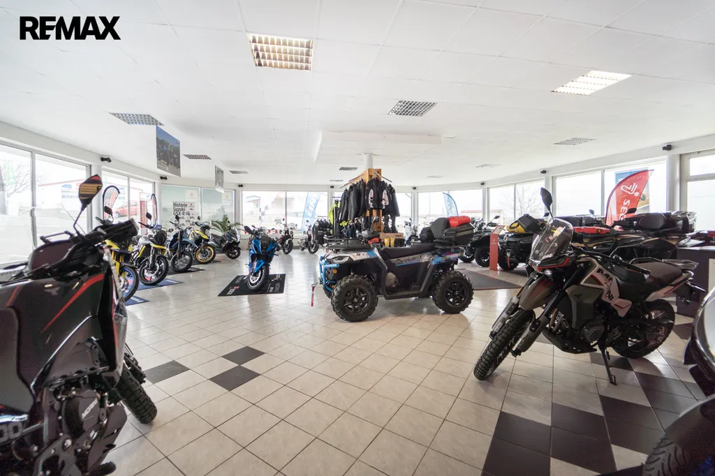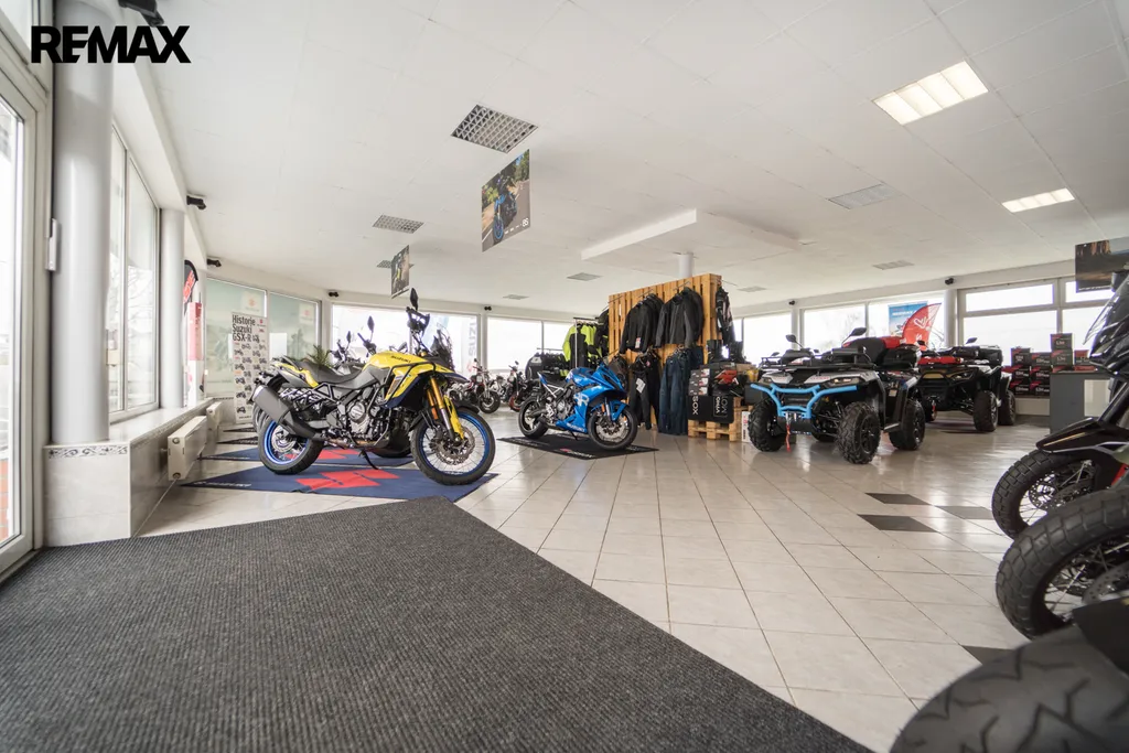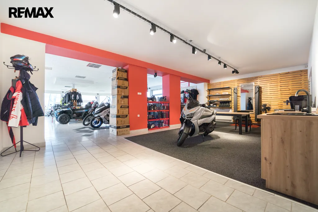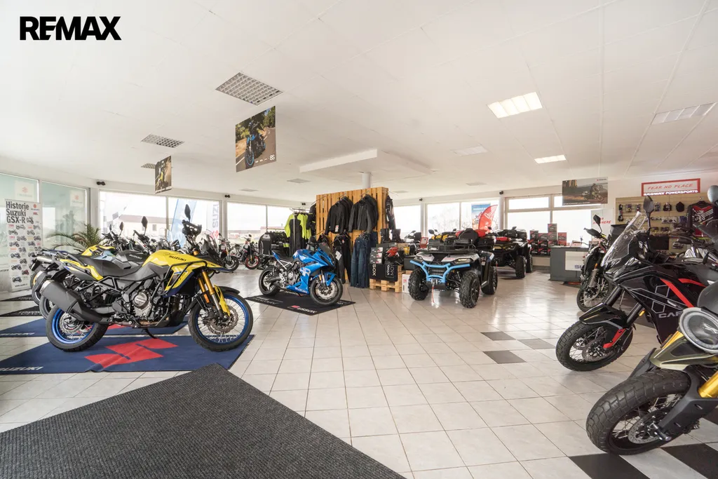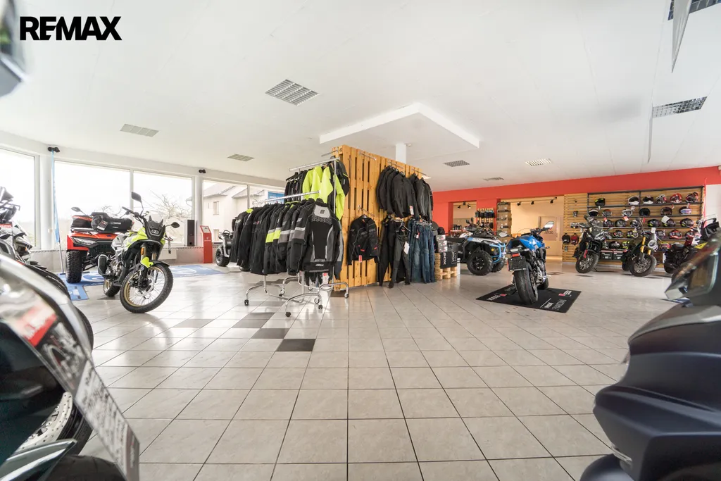 Nemovitost je koncipována jako menší autosalon, v současné době však plně funkčně využívána jako motosalon se spolehlivým a stabilním nájemcem – ideální kombinace vlastního využití i investice.