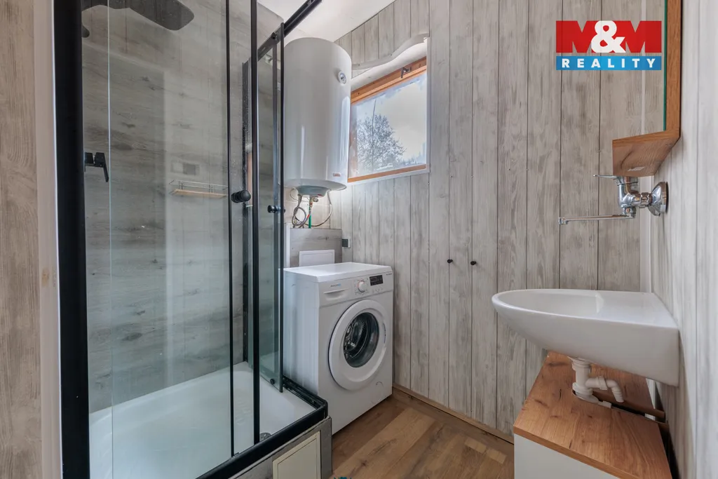 Prodáme dvougenerační dům se zahradou v Mariánské u Jáchymova. V přízemí se nachází byt 4+1 s koupelnou a dvěma WC, chodba a sauna s východem na terasu, v patře byt 3+1 s koupelnou a dvěma WC. Vytápění zajišťují akumulační kamna umístěná v každém pokoji, ohřev vody bojlery. Zahrada je částečně svažitá, na rovných částech je posezení s grilem vedle terasy a zastřešený koupací sud s ohřevem na tuhá paliva. Pro pohodlný život nabízí dům vše včetně velkého obytného prostoru pro dvě rodiny, parkovacího přístřešku, domácího wellness a krásného výhledu do okolí. Dům byl úspěšně provozován jako horská chalupa k pronájmu pro lyžaře, cyklisty a milovníky přírody. Uspořádání místností umožňuje bydlení i pronájem zároveň, nákupem této nemovitosti tedy získáte bydlení i vynikající investici. Z Mariánské se rychle dostanete do skiareálů na Plešivci a Klínovci nebo do lázní v Jáchymově. Pokud vás nabídka zaujala, neváhejte nás kontaktovat a domluvit si prohlídku.