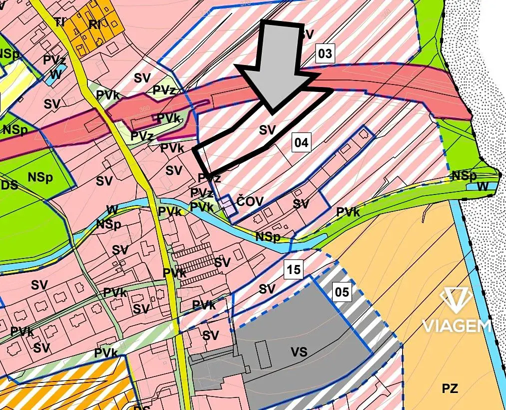 Oba pozemky se dle územního plánu nacházejí v ploše SVM – smíšené obytné (městské), která obecně umožňuje kombinaci bydlení a občanské vybavenosti.