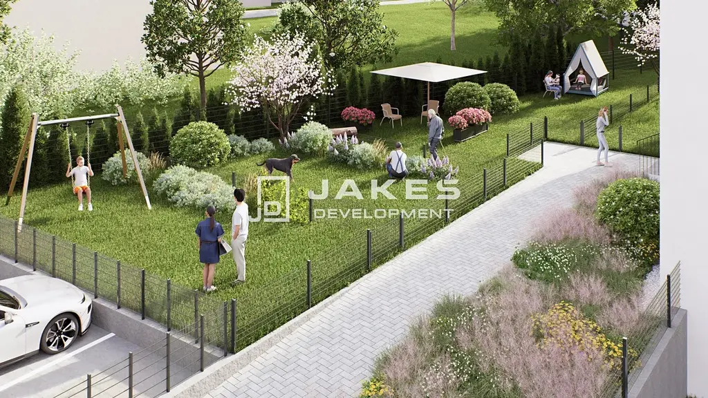 K bytové jednotce nabízíme jedinečnou možnost dokoupit samostatnou zahradu s přípravou na připojení elektřiny a vody. Tento bonus přináší zcela nový rozměr bydlení – kombinaci pohodlí moderního bytu a kouzla vlastního kousku přírody.
