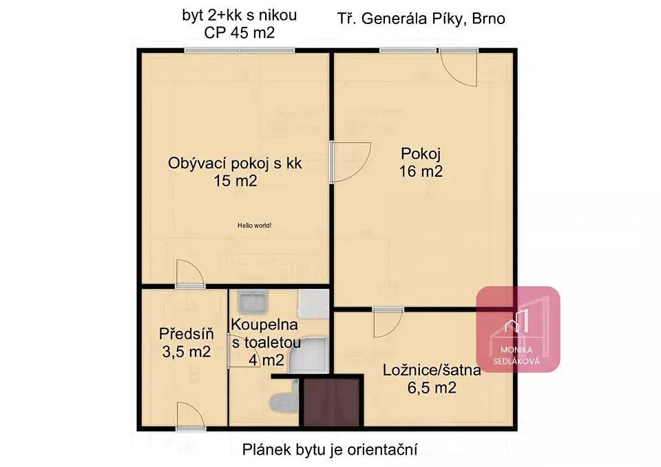 Chytrý byt 2+kk s nikou na spaní v Brně, Černých Polích.
