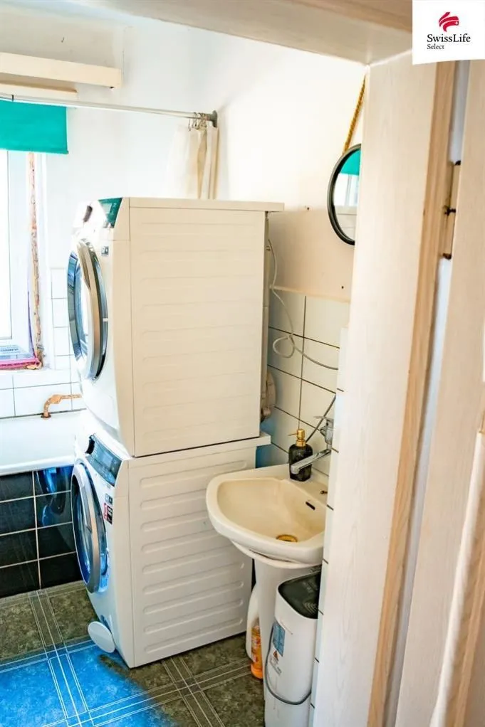1. NP: Kuchyň, obývací pokoj a původní, plně funkční koupelna se samostatným WC. Tato koupelna umožňuje v domě okamžitě bydlet, zatímco si v patře budete v klidu budovat nové zázemí.