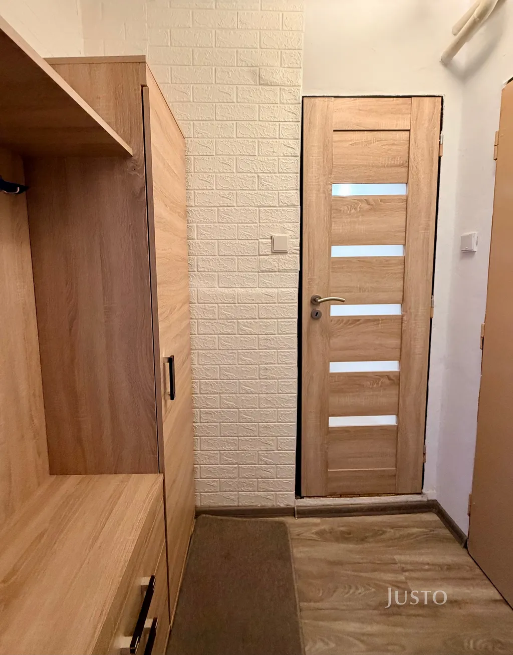 Byt je po rekonstrukci a nabízí světlý interiér s velkými plastovými okny, která zajišťují dostatek denního světla. Dispozice zahrnuje samostatný pokoj, kuchyň s jídelním koutem, koupelnu se sprchovým koutem a toaletou, předsíň a sklep. Součástí vybavení je kuchyňská linka se spotřebiči (lednice, mikrovlnná trouba, elektrická varná deska), pračka, televize a nábytek včetně postele, skříní a jídelního stolu. Byt je připraven k okamžitému nastěhování.