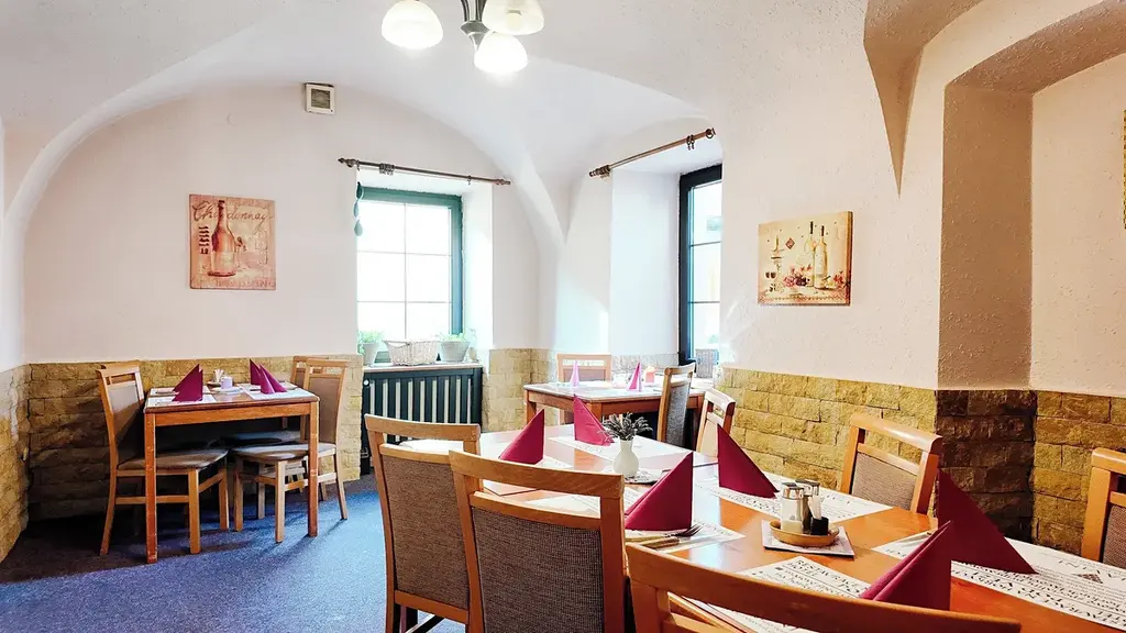 Na prodej zavedená restaurace a hotel v samém historickém centru města, jen pár kroků od Pražské brány a barokního kostela sv. Vavřince, cca 80 m od náměstí.