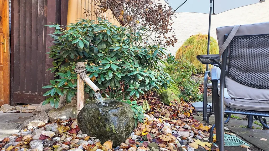 Součástí je restaurace, penzion a zahrada ve stylu feng-šuej.