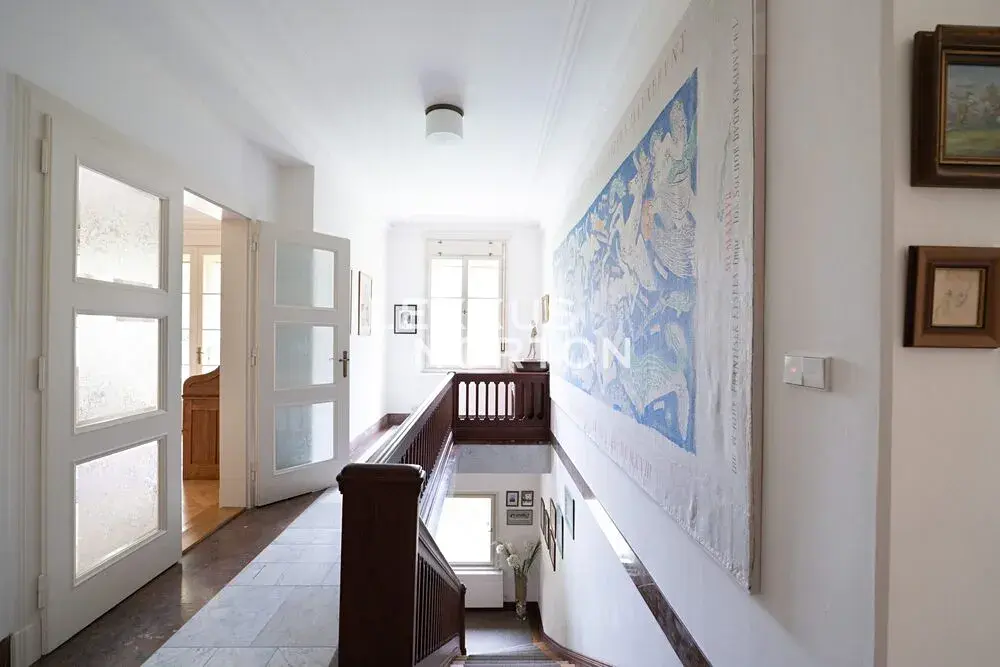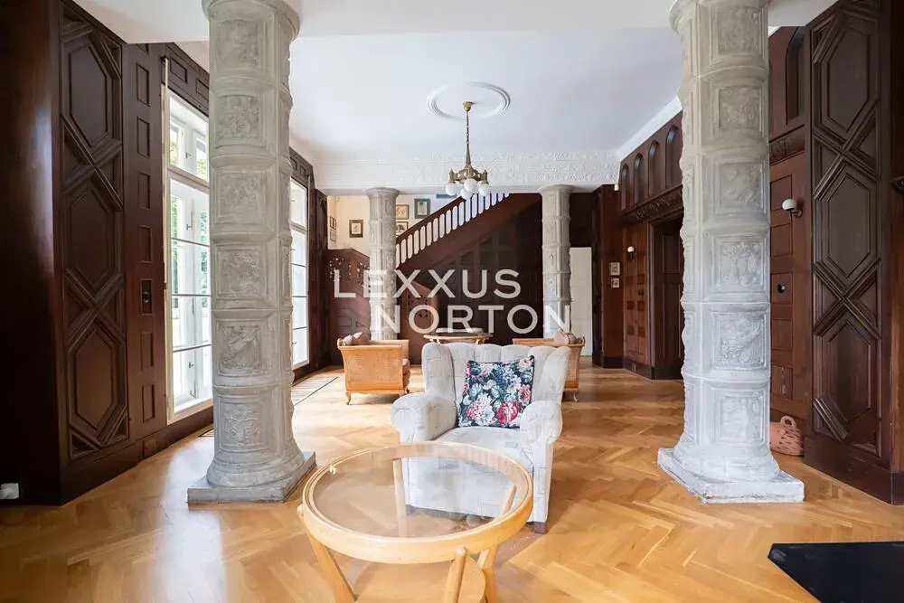 Hlavní vila s užitnou plochou 382 m² a obytnou půdou o velikosti 100 m² byla postavena v neoklasicistním stylu a dodnes si zachovala harmonické proporce, symetrii i cenné architektonické detaily. V letech 2004–2006 prošla kompletní restaurátorskou rekonstrukcí, provedenou s maximálním respektem k původnímu charakteru stavby. Obnoveny byly původní dřevěné obklady, štuky, podlahy i kamenické prvky, díky čemuž vila dnes nabízí autentický historický výraz v kombinaci s komfortem moderního bydlení.