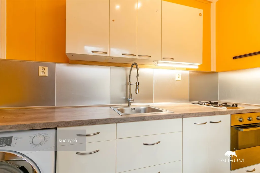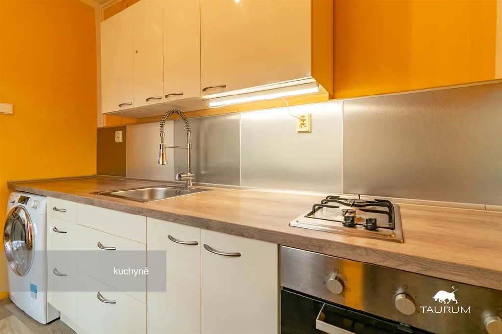 Bytová jednotka o velikosti 28,60 m² se nachází ve 3. patře menšího bytového domu. Dispozičně se skládá z předsíně, kuchyně, jednoho pokoje, koupelny a samostatného WC. Byt se prodává částečně zařízený – součástí ceny je kuchyňská linka včetně spotřebičů (plynový sporák s elektrickou troubou, lednice a pračka), jídelní stůl se židlemi a vybavení koupelny. K bytu náleží také sklepní kóje o velikosti 0,8 m² umístěná v suterénu domu.