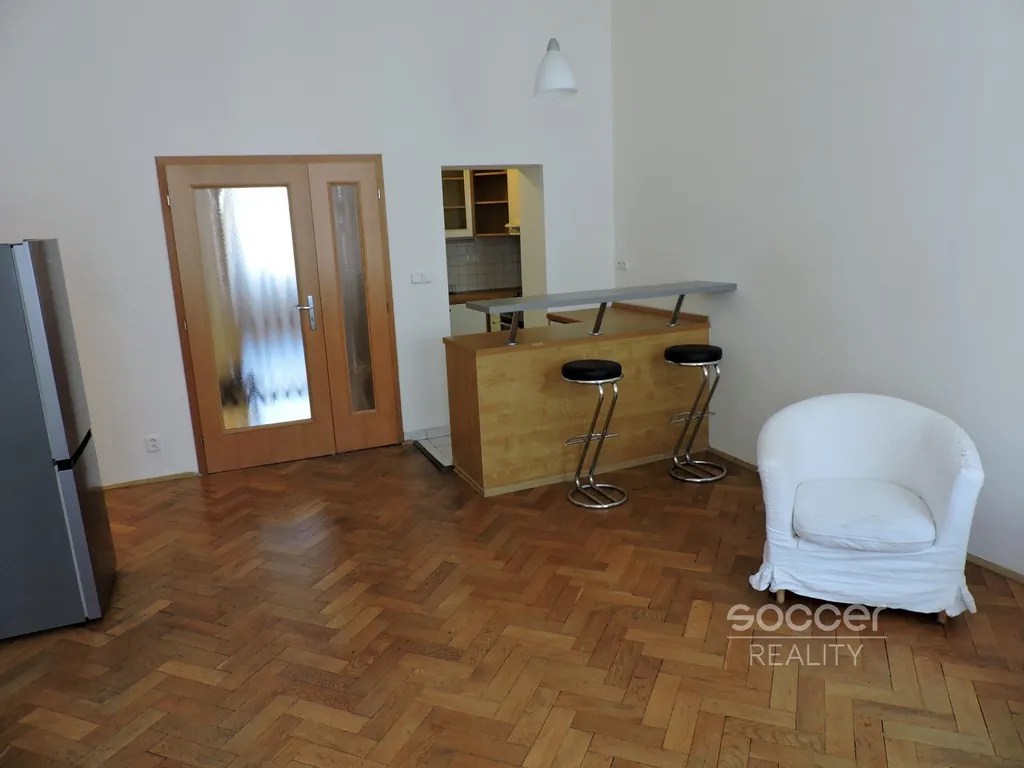 Soccer Reality vám zprostředkuje pronájem prostorného bytu na Vinohradech. Byt je situovaný ve druhém nadzemním podlaží cihlového domu.