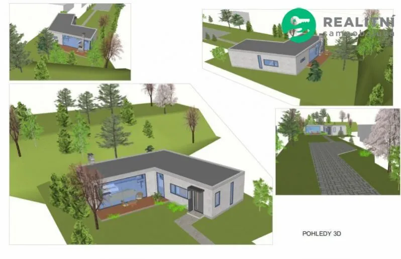Součástí nabídky je také architektonická studie rodinného domu, která může posloužit jako inspirace pro budoucí výstavbu nebo úpravu celého řešení pozemku.