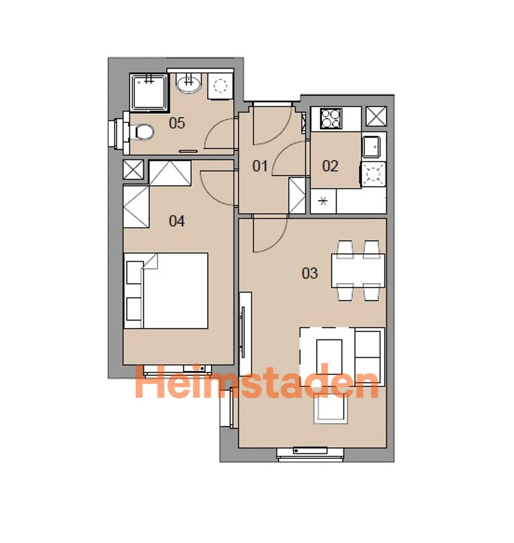 Interiér bytu tvoří dva samostatné slunné pokoje, kdy jeden slouží jako ložnice s velkou manželskou postelí a druhý, prostornější pokoj je vybaven dvěma jednolůžkovými postelemi. Kuchyně je plně vybavena vestavěnými spotřebiči a byt je připraven k okamžitému nastěhování bez nutnosti dalších investic. Dům disponuje výtahem a nabízí také možnost pronájmu garážového stání, což výrazně zvyšuje komfort bydlení.