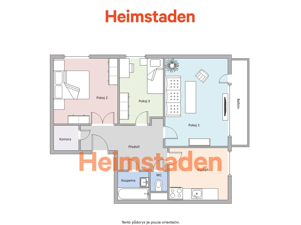 Nabízíme Vám slunný a velmi dobře dispozičně řešený byt 3+1, který se nachází v 3. nadzemním podlaží domu. Čeká Vás příjemný výhled do okolí a dostatek světla po celý den. Každý pokoj má samostatný vstup, což zajišťuje maximální soukromí a pohodlí pro rodinu i spolubydlení.