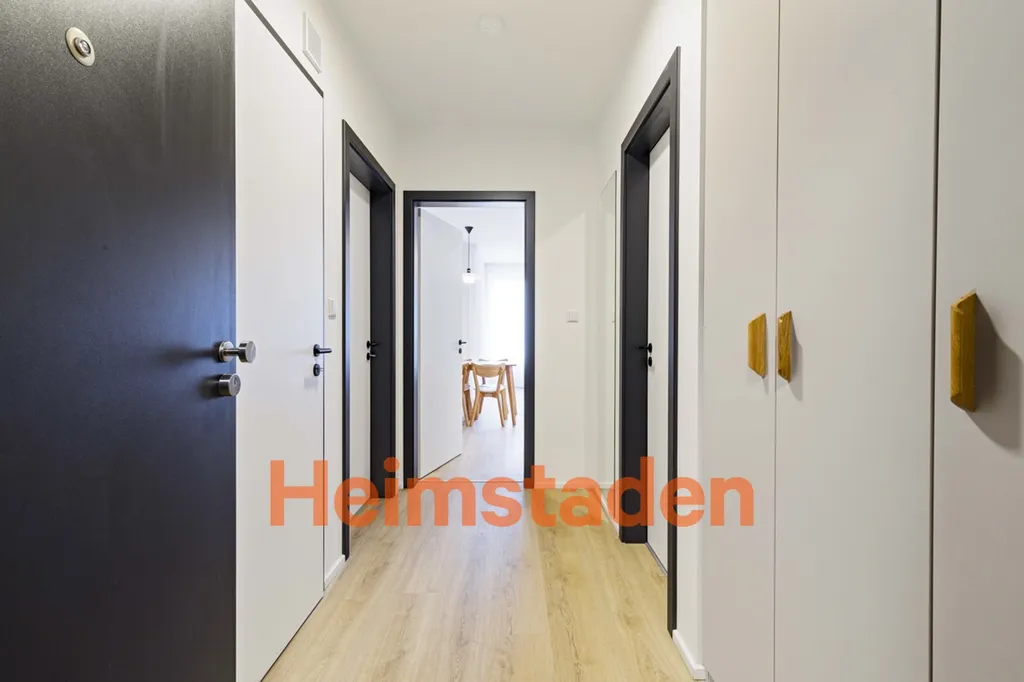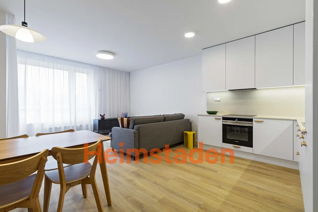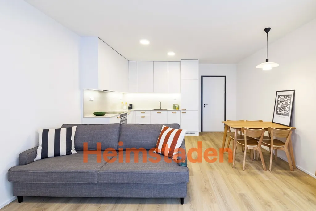 Byt se nachází v novostavbě s výtahem a nabízí promyšlené dispoziční řešení s dostatkem úložného prostoru. Dominantou je prostorný obývací pokoj s velkými okny, které zajišťují dostatek přirozeného světla po celý den, a moderní kuchyňská linka vybavená vestavěnými spotřebiči. K dispozici je také praktická komora a sklep, což ocení zejména ti, kdo hledají funkční a dobře organizované bydlení. Balkon orientovaný do vnitrobloku poskytuje příjemné místo k odpočinku. Byt je kompletně zařízen nábytkem, který je součástí pronájmu byt. K bytu je možné si dále pronajmout garážové stání v domě, což představuje výrazný benefit v této vyhledávané části města. Elektřina a internet budou převedeny na nájemce.