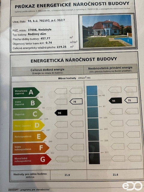 | Třída energetické náročnosti | G - Mimořádně nehospodárná |