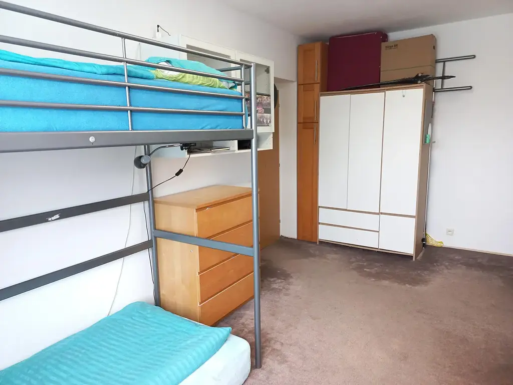 Na podlahách: plovoucí podlaha, PVC, koberec a dlažba. Plastová okna.