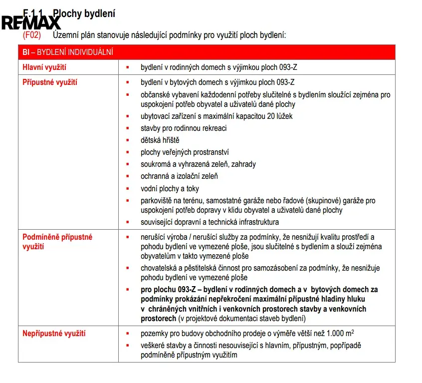 Zastavěnost tohoto pozemku je 30%, výška stavby 12 m, dvě nadzemní podlaží a podkroví. Zástavba charakteru domů či dvojdomů se vzájemnými odstupy bočních fasád.