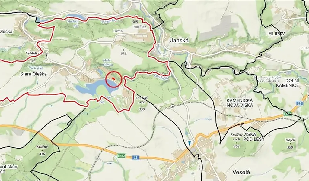 Pozemek p. č. 383/2 v k. ú. Stará Oleška - ostatní plocha o výměře 510 m2, způsob využití: sportoviště a rekreační plocha. Pozemek leží v chatové oblasti lokality Stará Oleška, u přírodního koupaliště.