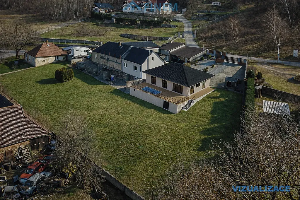 Pozemek již připraven pro okamžitou realizaci záměru. Disponuje vybudovaným parkovacím stáním s přímým napojením na komunikaci a vjezdovou bránou. Součástí nabídky také kompletní projekt se stavebním povolením na moderní jednopodlažní bungalov s bazénem, jehož podobu lze vidět na dostupných vizualizacích. Tento projekt k dispozici za úplatu 500.000 Kč a jeho převzetí je podmínkou prodeje.