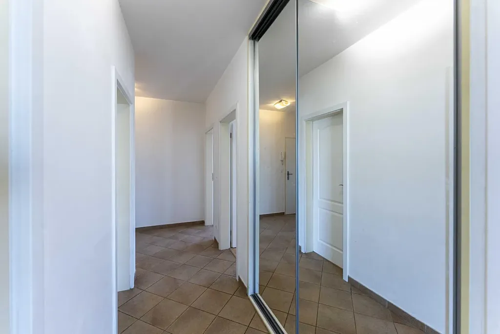 Byt má vstupní chodbu s vestavnými skříněmi, 2 ložnice s balkonem, obývací pokoj s dalším balkonem a samostatnou kuchyň vybavenou běžnými spotřebiči. V koupelně je vana a sprchový kout, dále se v bytě nachází samostatná toaleta.