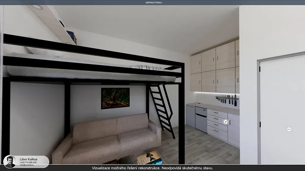 obývací pokoj s kuchyňským koutem o velikosti 15,63 m²