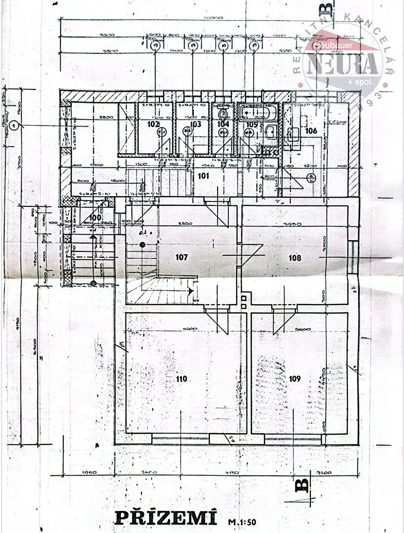 1. patro: byt 3 až 4+kk se samostaným vchodem (obývací pokoj s kuchyňským koutem, dvě ložnice, koupelna s WC a komora),