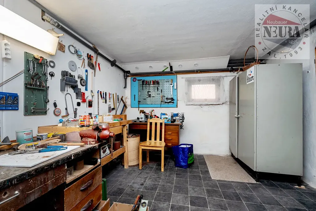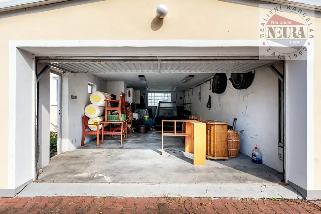 k domu je přistavěná garáž o výměře cca 44 m2 pro 2 až 3 osobní vozy, zahrada se vzrostlými stromy, jezírko, skleník a altán, studna,