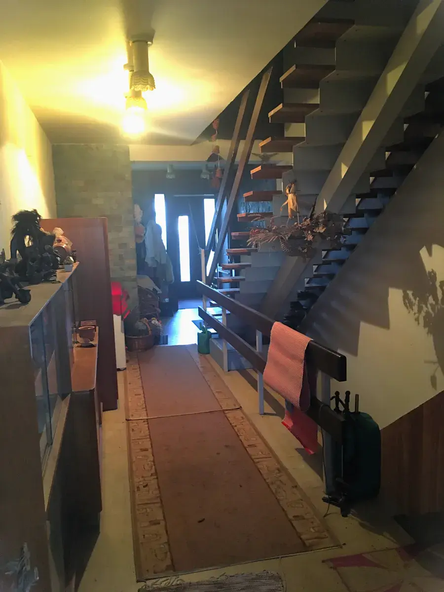 Pohodlné schodiště rozděluje horní patro na dva byty. Větší 95m2 s obývacím pokojem s kuchyní, dvěma pokoji a sociálním zařízením. Menší 87,5m2 s obývacím pokojem kuchyní, sociálním zařízením a jedním pokojem. Vytápění je zajištěno plynovým kotlem 1 rok stáří, dvěma krbovými kamny a krbem v přízemí.